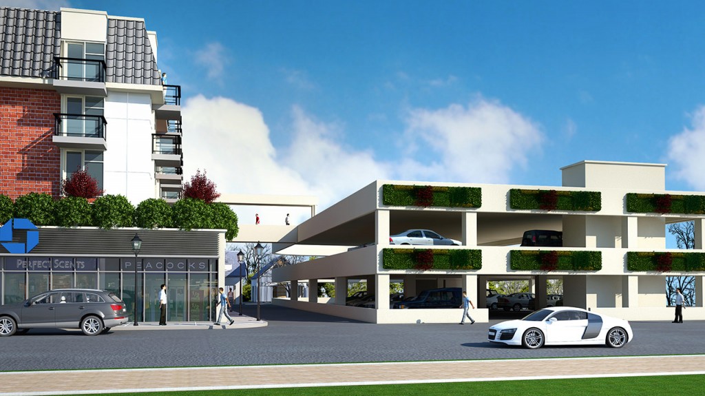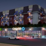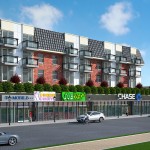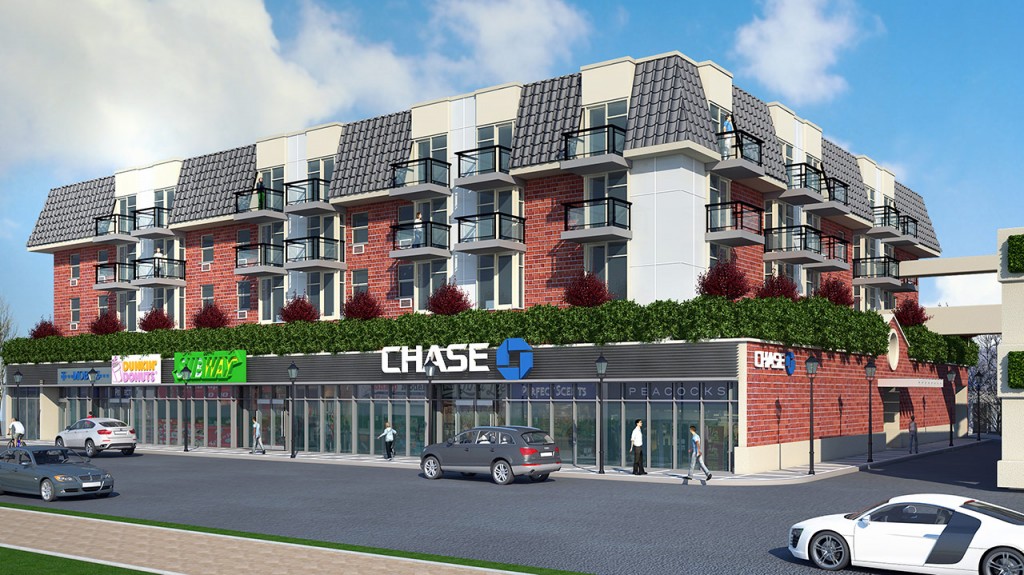 The development is traditional non combustible construction of a Mixed Used Commercial and Residential structure with parking for the residential on site as well as on an adjacent site.